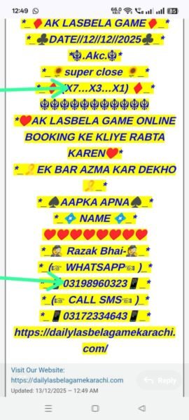 *_Daily lasbela game online booking k liye rabta karen_*