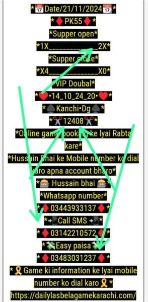 *🎮Daily Lasbela Game Online Booking ki liye Rabta Karen🎮*