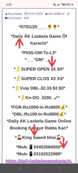 *🎺Daily Lasbela Game Online Booking K Liye Rabta Karen 🎺*