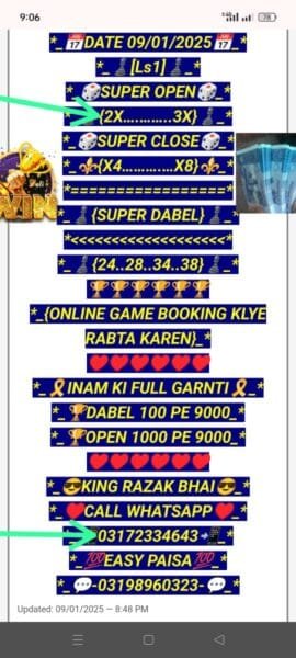 *_🎮Daily Lasbela Game Online Booking ki liye Rabta Karen🎮_*