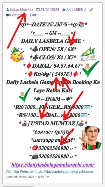 *_🎮Daily Lasbela Game Online Booking ki liye Rabta Karen🎮_*
