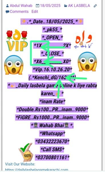*♟️♟️DAILY LASBELA GAME ONLINE BOOKING KA LiYE RABTA KAREN♟️♟️*