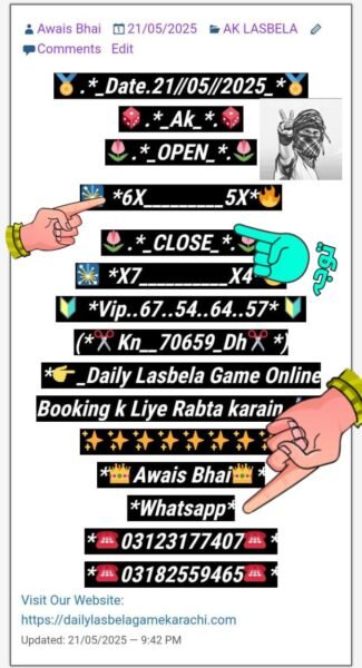 *_💞Daily Ak Lasbela Game Online Booking ke Liye Rabta Karen💞_*