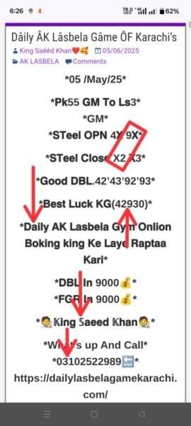 ڈیلی لسبیلا گیم کھیلنے کے لیے رابطہ کریں انام کی فل گارنٹی گیم میسج یا واٹس ایپ کریں
