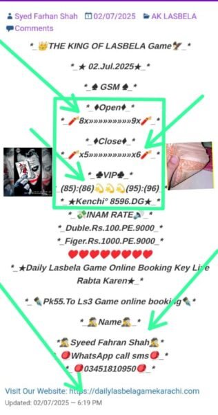 *_📆Date//02//06//2025📆_* *_💢 ls1💢_* *_[Open•••••8X••••3X••]_* *_[Close••••X4••••X5••]_* *_[Dboul•84.48.35.53•]_*. *_[Kanchi••48350••dg•]_* 〰️〰️〰️〰️〰️〰️〰️〰️ *_Dealy Lasbela Game Online Booking K Liye Rabta Karen_* *_🎖️Inam Reat🎖️_* *_Double_Rs.100 pr 9000_* *_Figer__Rs.1000 pr 9000_* *_🥷My Name🥷_* *_King Basit Bhai_* *_Contact Number_* *_03190218021_* *_Call SMS_* *_03173211479_* ✓✓✓✓✓✓✓✓✓✓✓