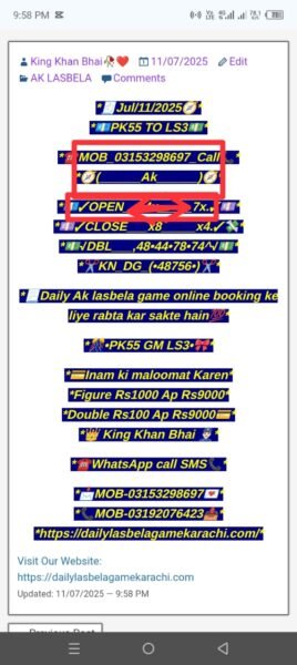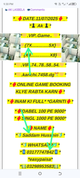 ڈیلی لسبیلا گیم کھیلنے کے لیے رابطہ کریں انام کی فل گارنٹی گیم میسج یا واٹس ایپ کریں