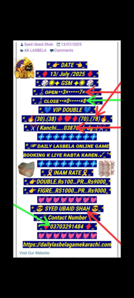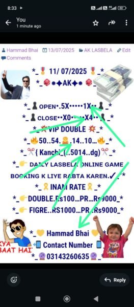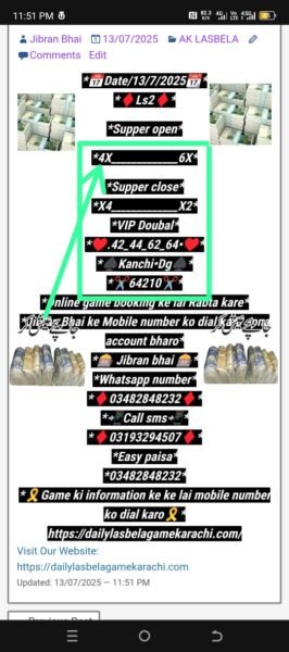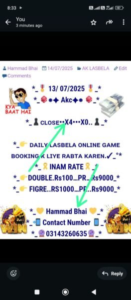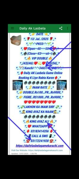 *📃Daily Ak lasbela game online booking ke liye rabta kar sakte hain💯*