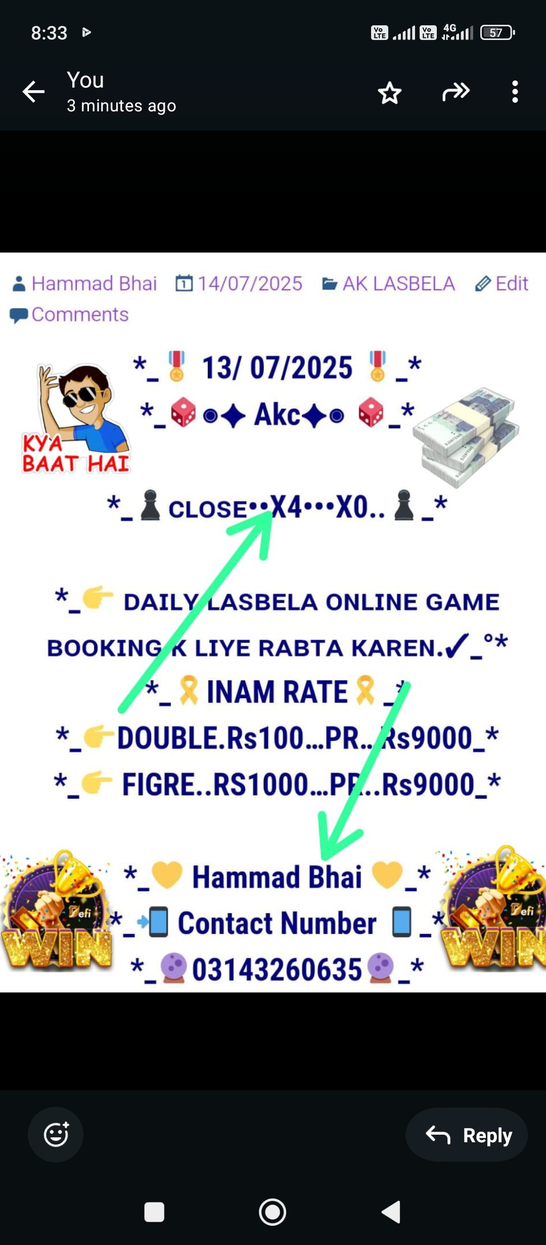 *🎲گیم کی بکنگ کے لیے رابطہ کریں💯🎲*