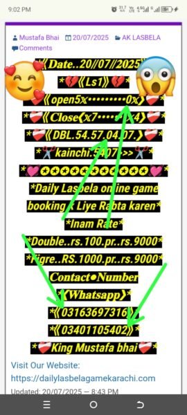 *📃Daily Ak lasbela game online booking ke liye rabta kar sakte hain💯*