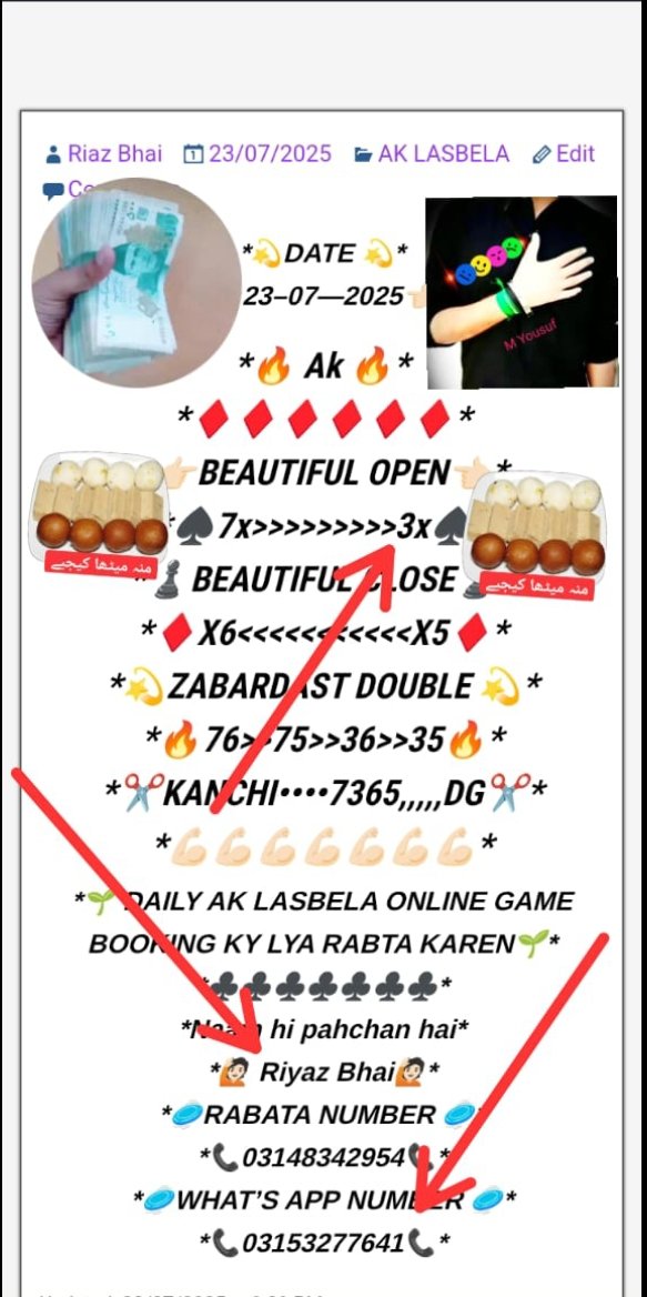 ڈیلی لسبیلا گیم کھیلنے کے لیے رابطہ کریں انام کی فل گارنٹی گیم میسج یا واٹس ایپ کریں