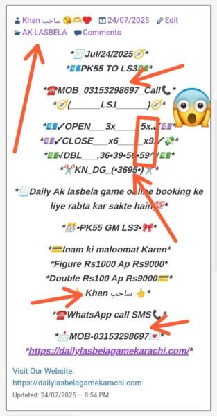 *📃Daily Ak lasbela game online booking ke liye rabta kar sakte hain💯*