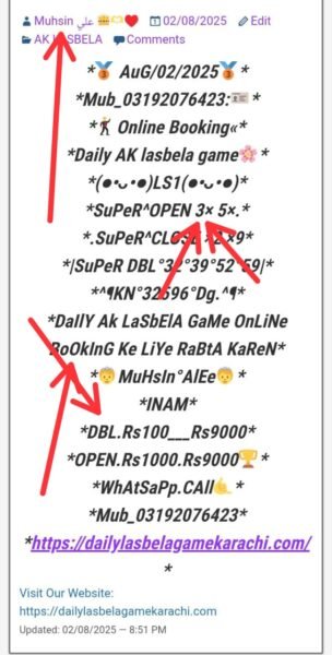 *📃Daily Ak lasbela game online booking ke liye rabta kar sakte hain💯*