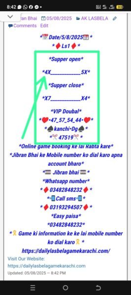 ڈیلی لسبیلا گیم کھیلنے کے لیے رابطہ کریں انام کی فل گارنٹی گیم میسج یا واٹس ایپ کریں