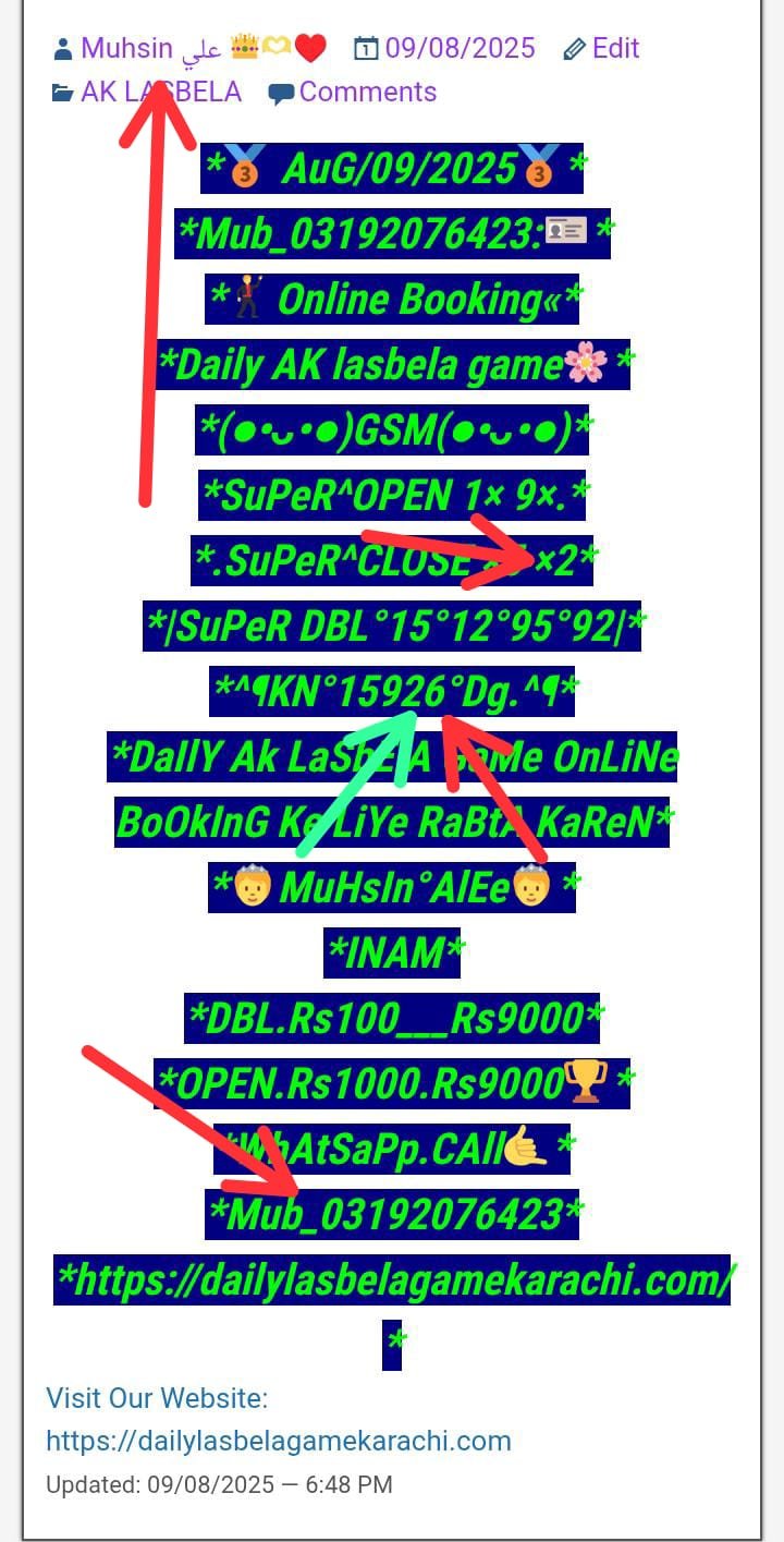 *_🌻Daily Lasbela game online booking ke liye Rabta Karen Ek Bar Aazma kar Dekho Apne doston ke game bhi ok karvao🌻_*