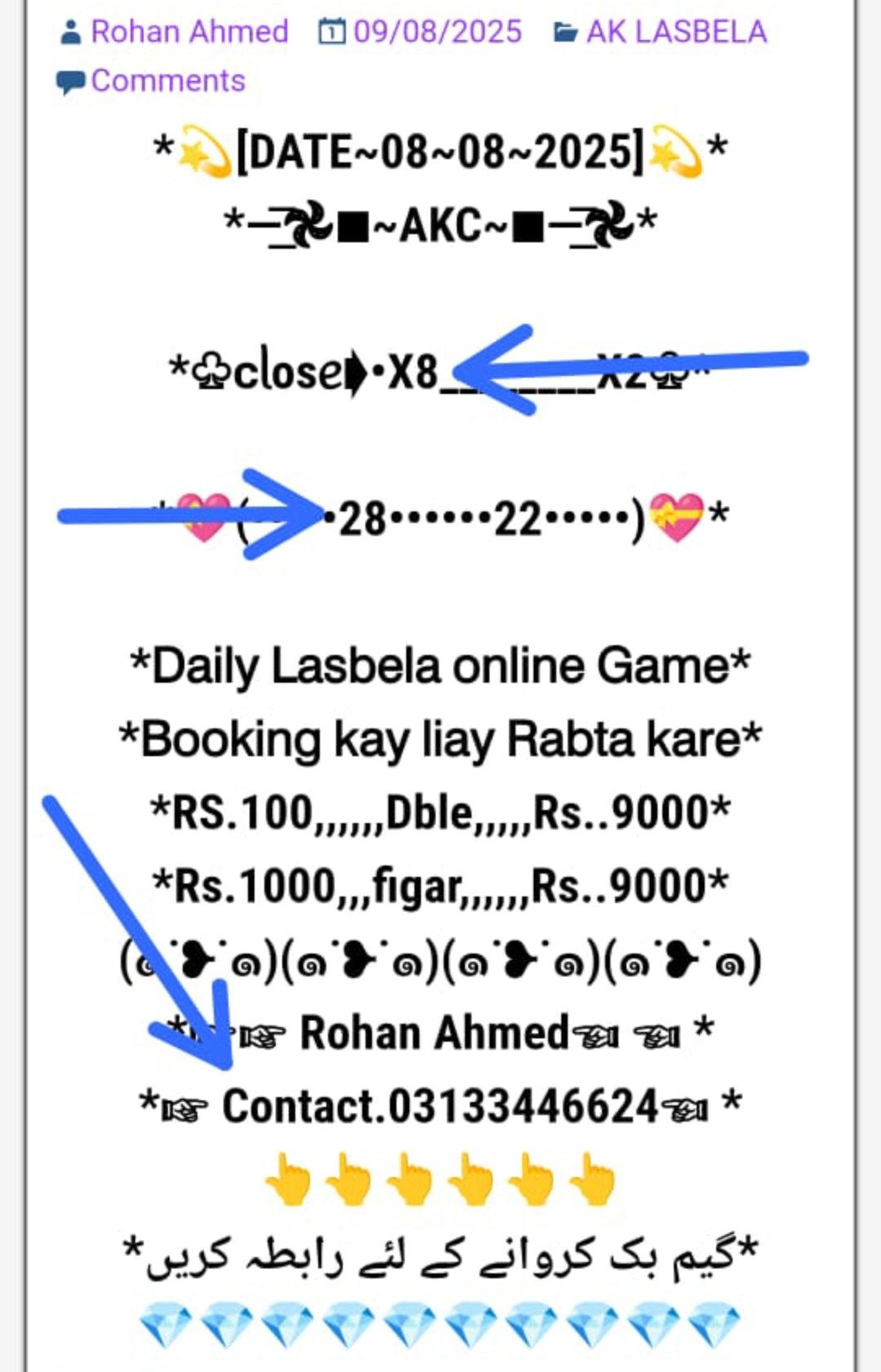 ڈیلی لسبیلا گیم کھیلنے کے لیے رابطہ کریں انام کی فل گارنٹی گیم میسج یا واٹس ایپ کریں