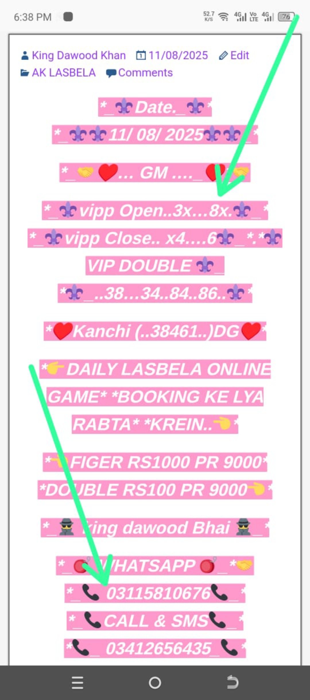 ڈیلی لسبیلا گیم کھیلنے کے لیے رابطہ کریں انام کی فل گارنٹی گیم میسج یا واٹس ایپ کریں