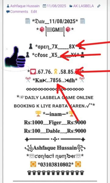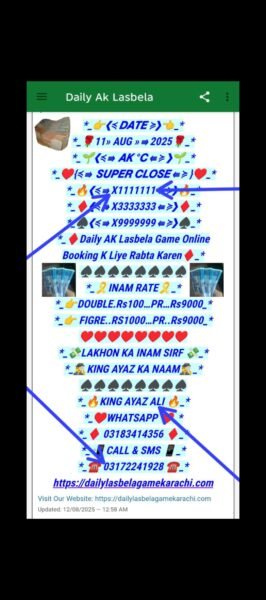 ڈیلی لسبیلا گیم کھیلنے کے لیے رابطہ کریں انام کی فل گارنٹی گیم میسج یا واٹس ایپ کریں