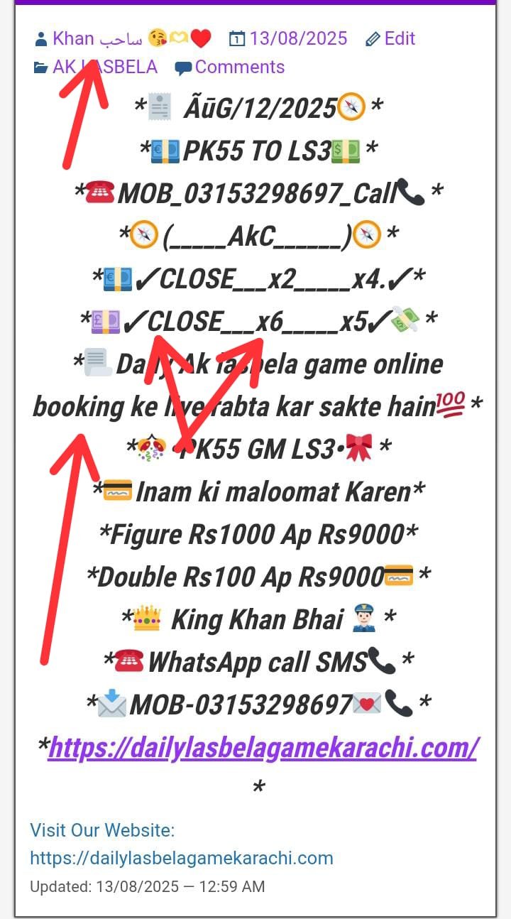 *🔰DAILY AK LASBELA GAME ONLINE BOOKING KE LIYE RABTA KAREN🔰*