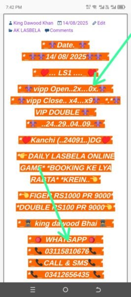 *ڈیلی لسبیلا گیم کھیلنے کے* *لیے رابطہ کریں انام کی فل* *گارنٹی گیم میسج یا واٹس* *ایپ کریں*
