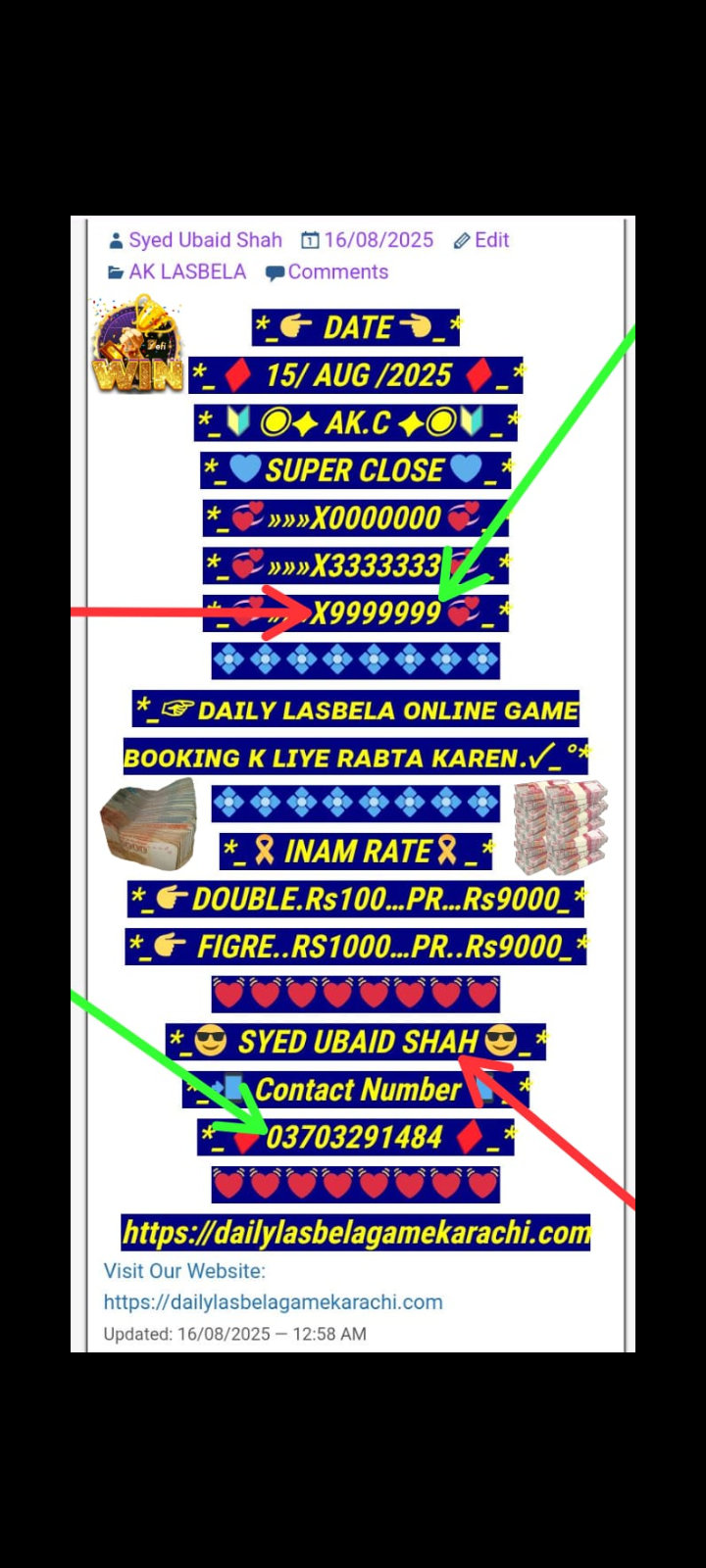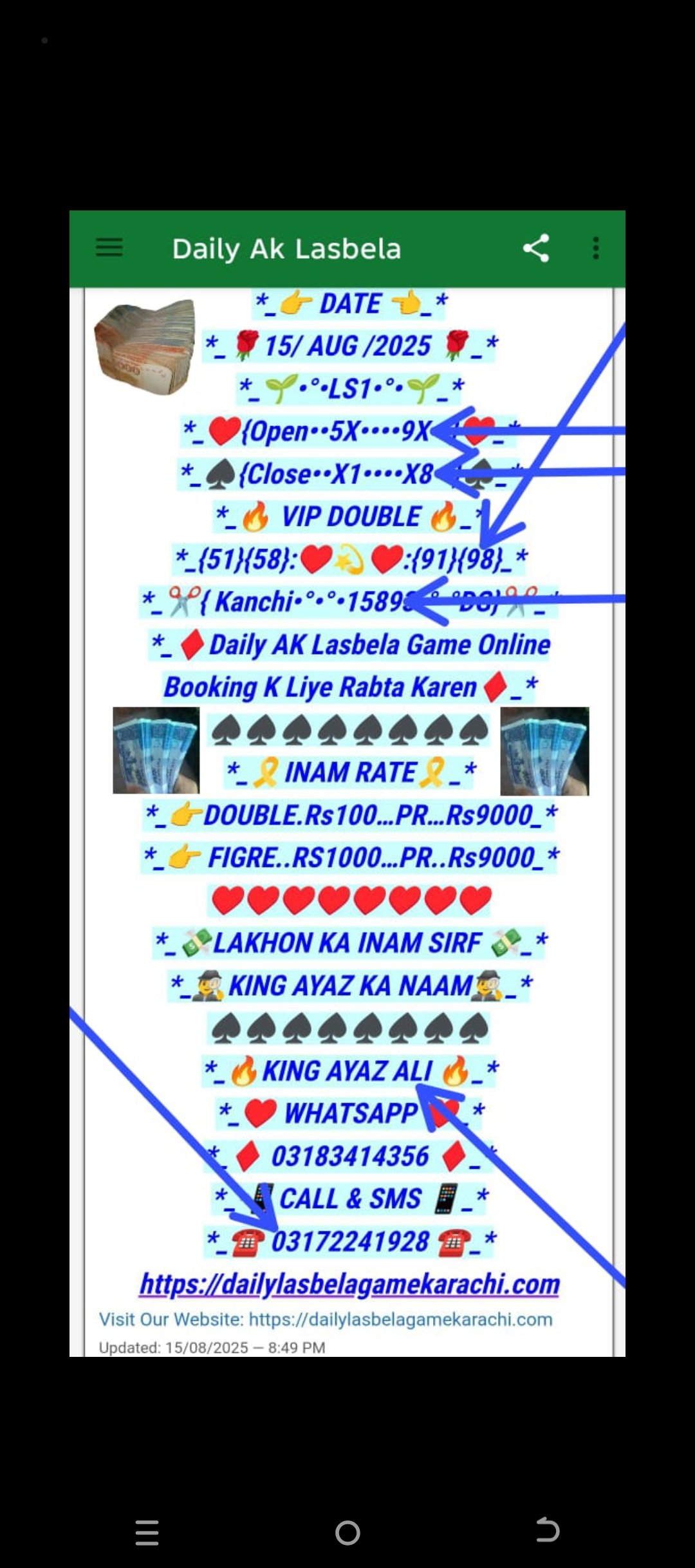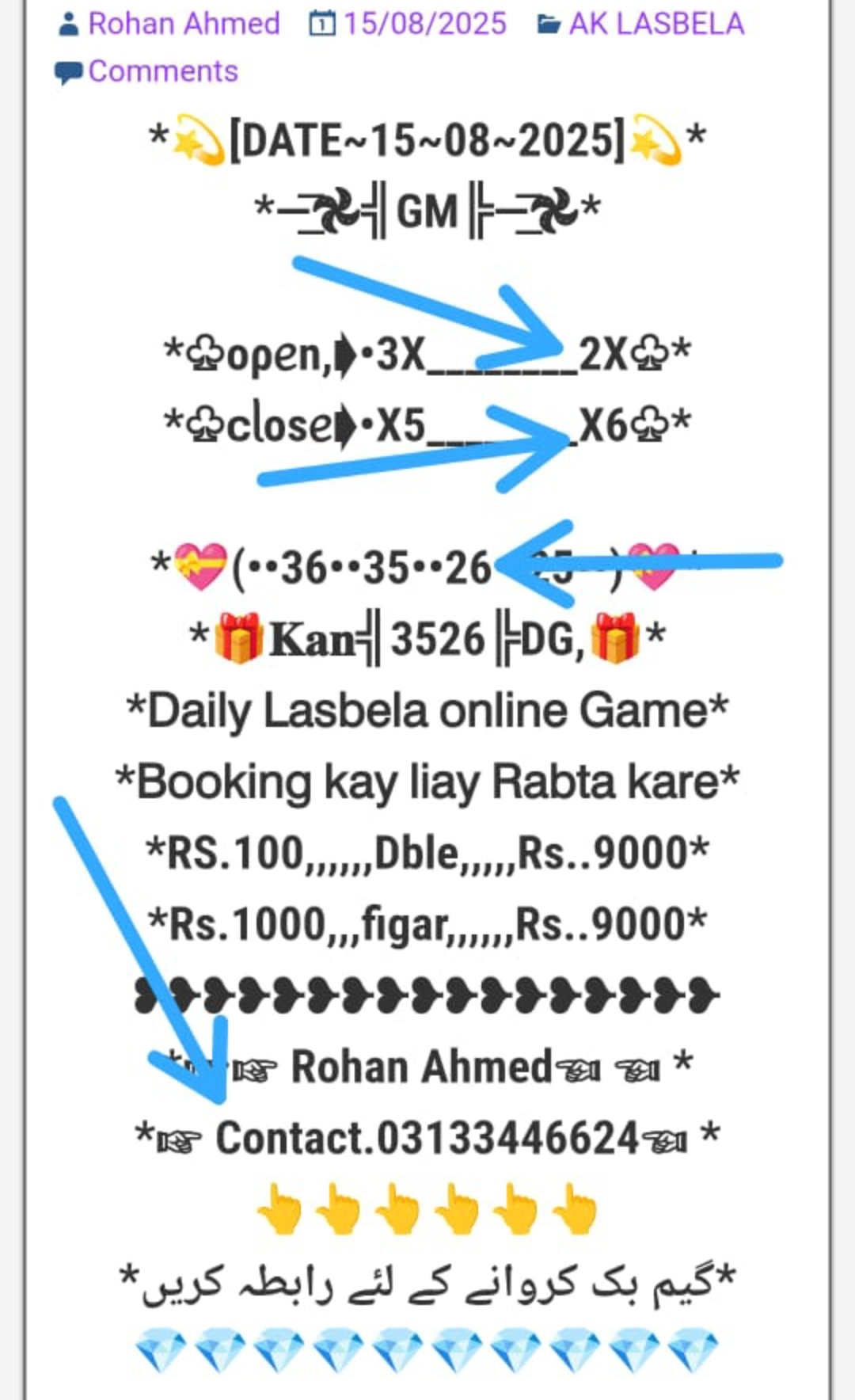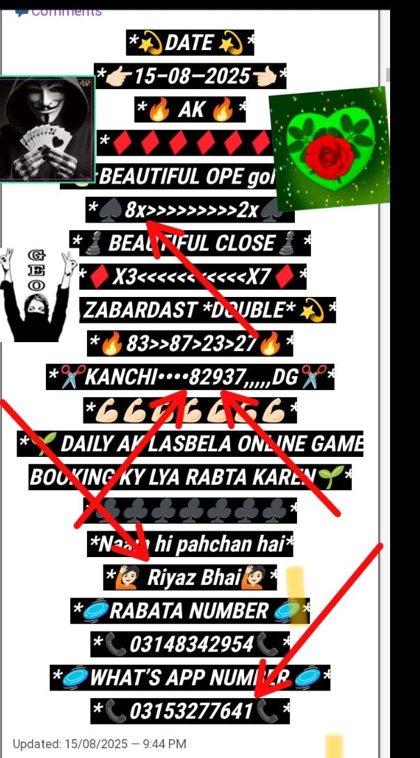 *ڈیلی لسبیلا گیم کھیلنے کے* *لیے رابطہ کریں انام کی فل* *گارنٹی گیم میسج یا واٹس* *ایپ کریں*