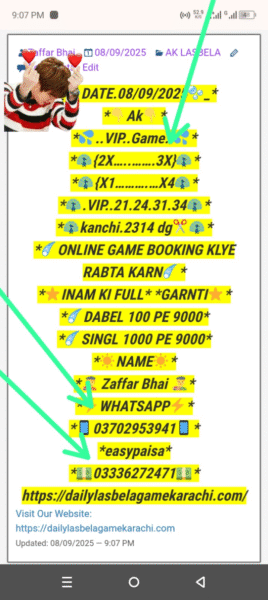 ڈیلی لسبیلا گیم کھیلنے کے لیے رابطہ کریں انام کی فل گارنٹی گیم میسج یا واٹس ایپ کریں