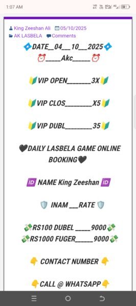 *🔰DAILY AK LASBELA GAME ONLINE BOOKING KE LIYE RABTA KAREN🔰*
