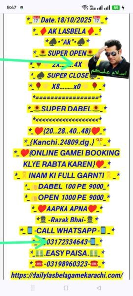 ڈیلی لسبیلا گیم کھیلنے کے لیے رابطہ کریں انام کی فل گارنٹی گیم میسج یا واٹس ایپ کریں