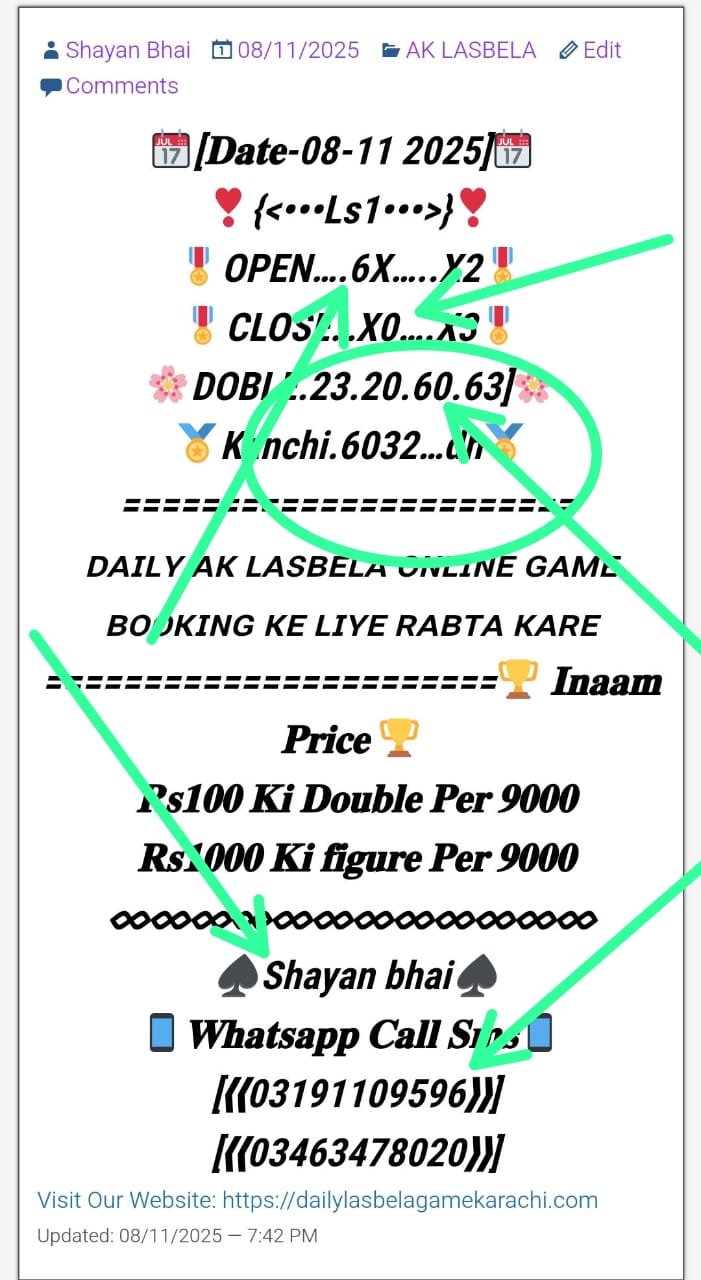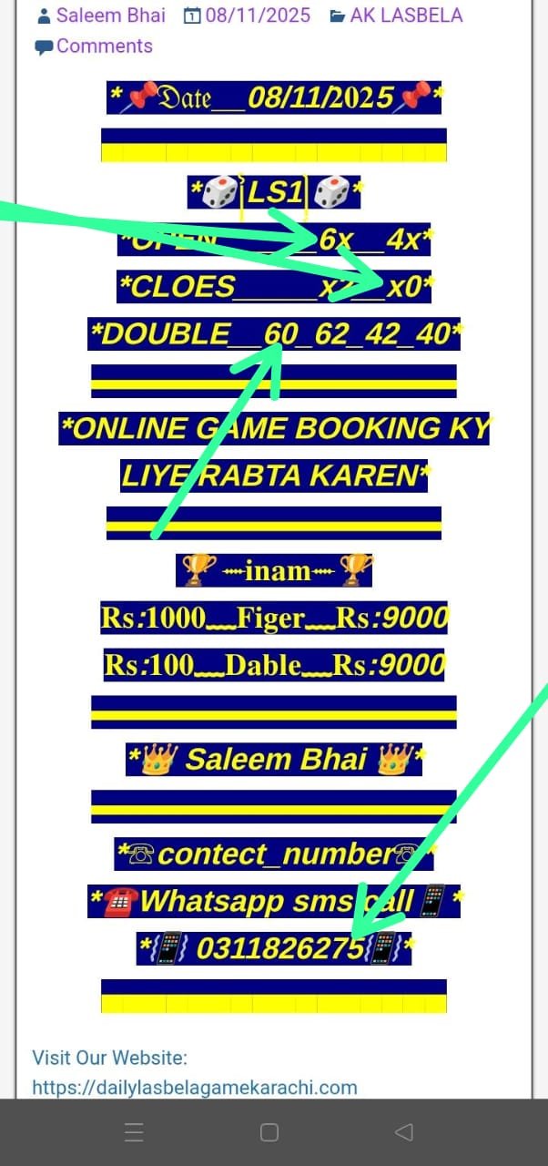 ڈیلی لسبیلا گیم کھیلنے کے لیے رابطہ کریں انام کی فل گارنٹی گیم میسج یا واٹس ایپ کریں