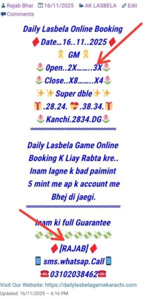 *👉DAILY LASBELA ONLINE GAME* *BOOKING KE LYA RABTA* *KREIN..👈*