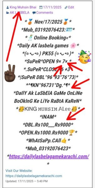 *🔰DAILY AK LASBELA GAME ONLINE BOOKING KE LIYE RABTA KAREN🔰*