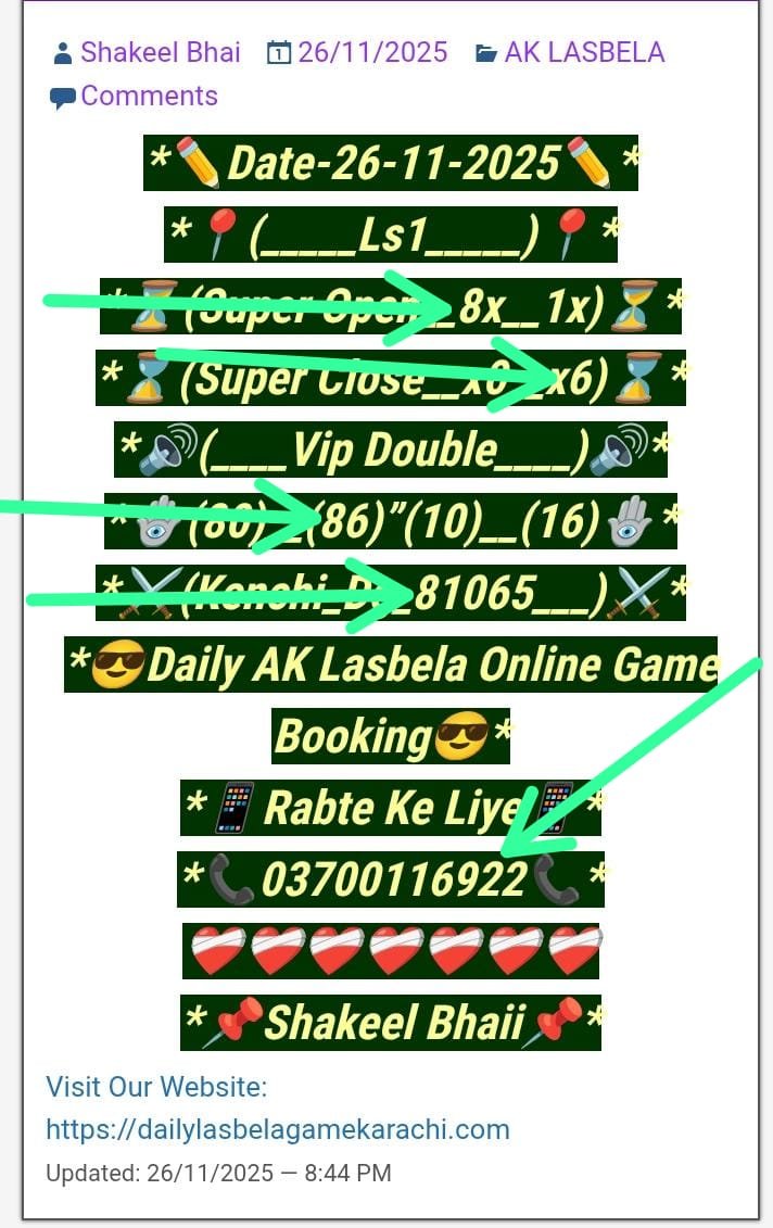 ڈیلی لسبیلا گیم کھیلنے کے لیے رابطہ کریں انام کی فل گارنٹی گیم میسج یا واٹس ایپ کریں