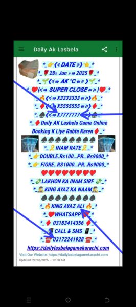 – 324755 – June 29, 2025 – 324755 King Ayaz Ali 29/06/2025 AK LASBELA, FORMULA, GUESS PAPER, WINNING PAPER Β Β πΎππππΌπΎπΒ Β Β Β Β ππππ πΌππΌπ πΌππΒ Β Β Β 03183414356Β Β