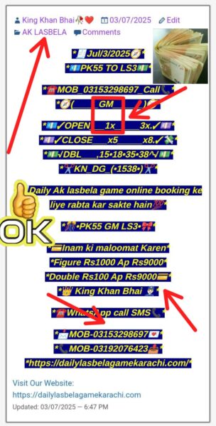Mussa Bhai 03/07/2025 AK LASBELA, FORMULA, GUESS PAPER, WINNING PAPER Comments Khan bhai ,,🥳♥️WhatsApp number Mub_03153298697Mub_03192076423