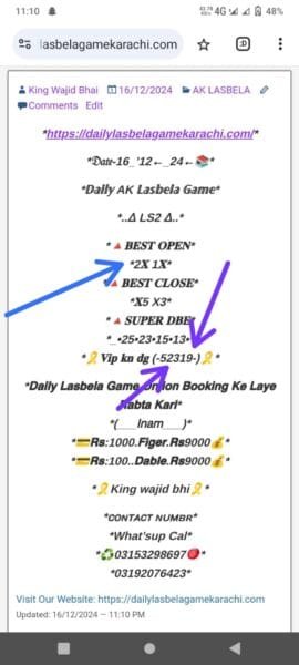 17/12/2024 AK LASBELA, WINNING PAPER CommentsDaily lasbela game ls2 winning open kainchi contact number WhatsApp call 03153298697