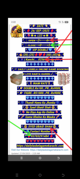 Syed Ubaid Shah 27/09/2025 AK LASBELA, FORMULA, GUESS PAPER, WINNING PAPER Comments 𝘾𝙊𝙉𝙏𝘼𝘾𝙏 SYED UBAID SHAH 03703291484