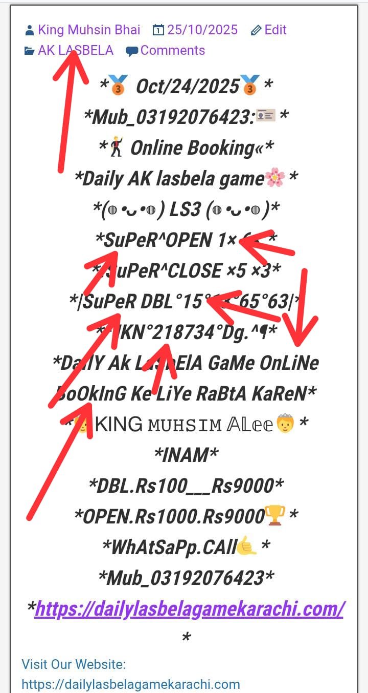 King Muhsin Bhai 25/10/2025 AK LASBELA, WINNING PAPER CommentsOnline booking Contact number03192076423