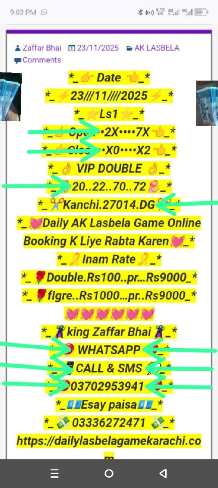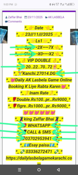 Zaffar Bhai 23/11/2025 AK LASBELA, WINNING PAPER CommentsKing Zaffar Bhai Daily Lasbela Game Online Booking K Liye Rabta Karen03702953941