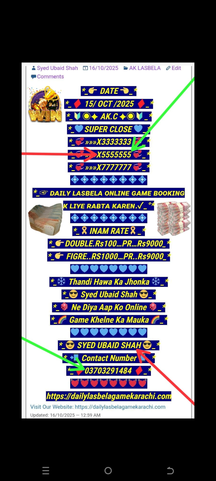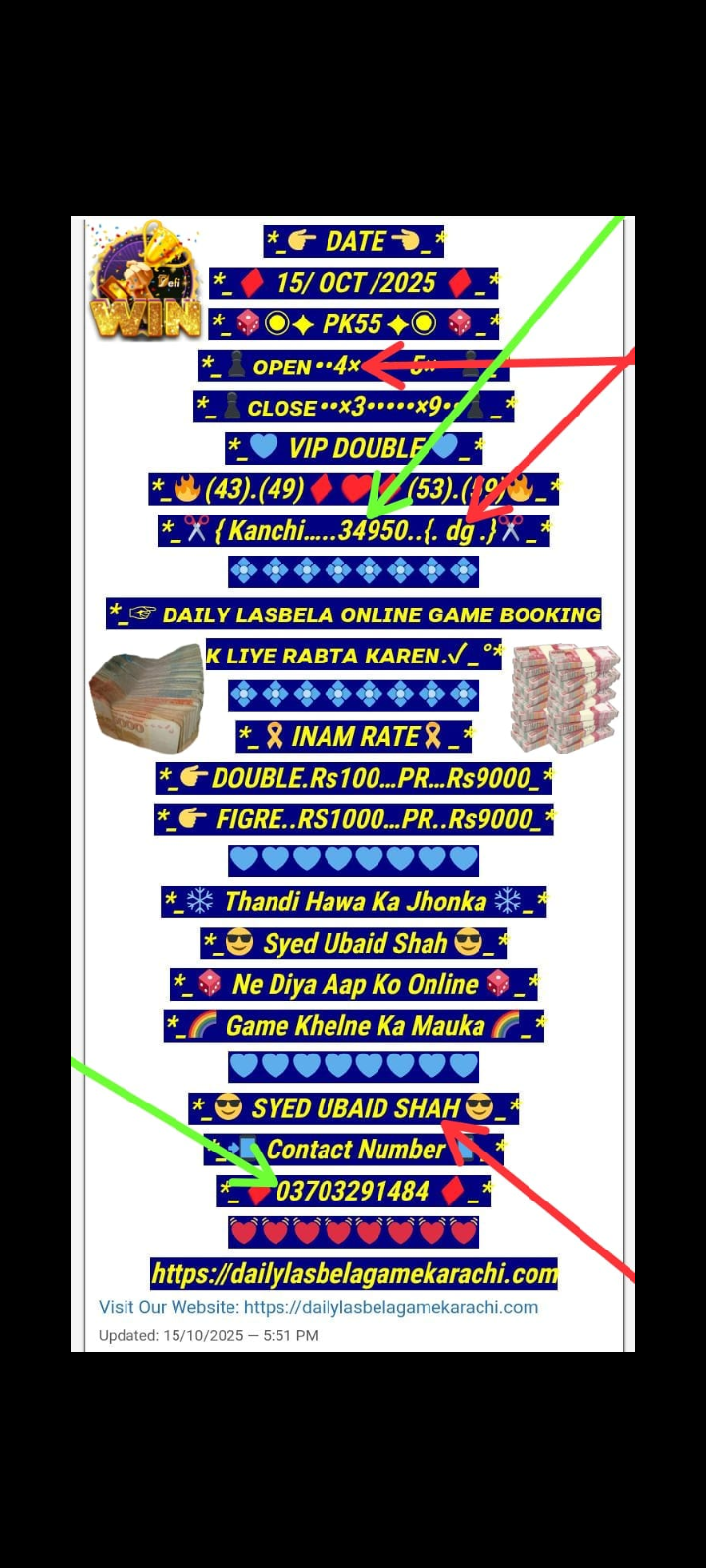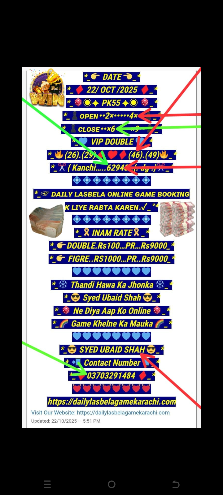 *_🏆Daily lasbela Game online booking k Liye rabta karen🏆_*